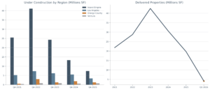 - Trend: Developers remain cautious with speculative starts as higher inventory levels and slower leasing activity create additional risk.